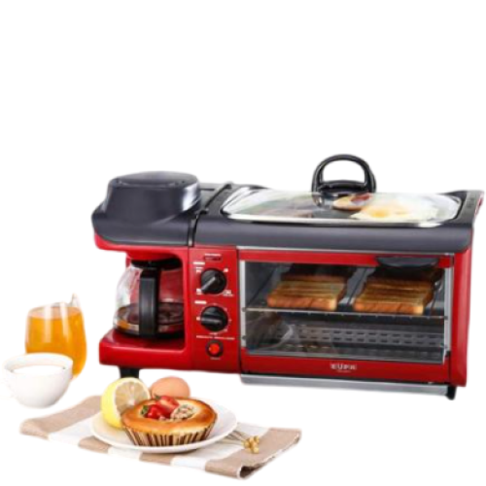 ميكروويف وقلاية وصانعة القهوه 3 في 1 يجمع بين ثلاث وظائف في جهاز واحد لتوفير المساحة والوقت في المطبخ يتميز بتصميم أنيق وعصري يجمع بين اللونين الأحمر والأسود ويقدم أداءً عالي الجودة مع تحكم سهل ومريح مثالي للمطابخ الصغيرة والمكاتب من متجر EM Store