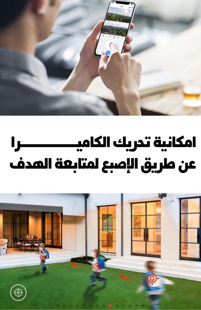 كشاف بعيد المدى و كاميرا واي فاي برؤية كاملة في كل الاتجاهات بفضل حركة دوران 360 درجة تمنحك تغطية شاملة للمكان بجودة 4K ULTRA HD وعدسة متحركة قابلة للتحكم يدويًا أو عن بُعد عبر التطبيق.
